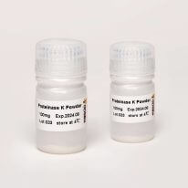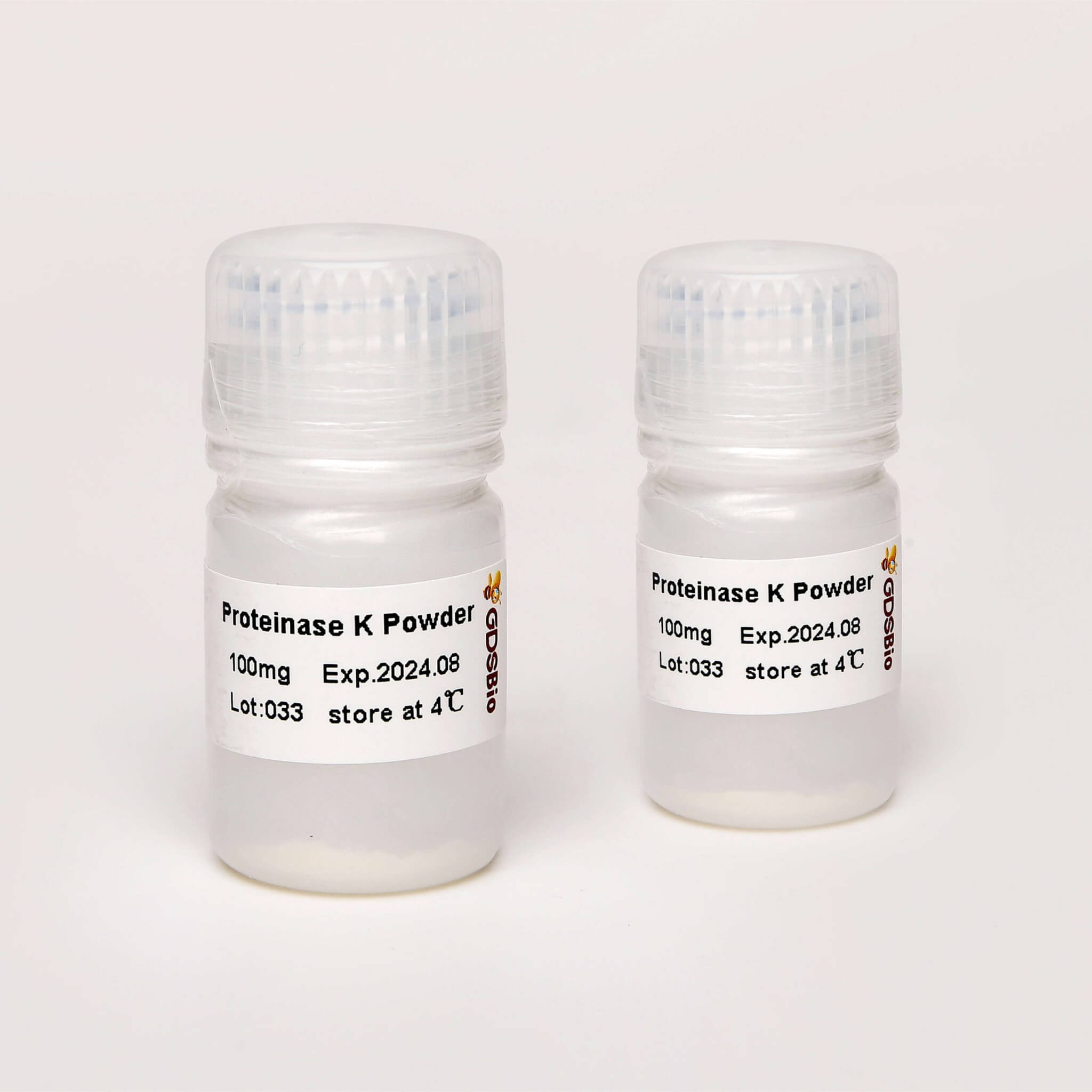 蛋白酶 K 是一种非特异性的蛋白内切酶,可以切割脂肪族氨基酸、疏水性氨基酸和芳香族氨基酸羧基端连接的酯键和肽键。分子量 大小为 29.3 kDa(单体)。该酶属于丝氨酸类蛋白酶,其水解的最小多肽是四肽分子。 蛋白酶 K 的推荐工作浓度为 0.05-1 mg/ml。0.2%SDS 或 1-4 M 尿素可刺激该酶的活性。 Ca2+可以保护蛋白酶 K 不会自我降解、增加蛋白酶 K 的热稳定性、调节蛋白酶 K 的底物结合位点。 蛋白酶 K 在宽 pH 值(4.0-12.5)范围内保持稳定,最佳 pH 值范围是 7.5-8.0。