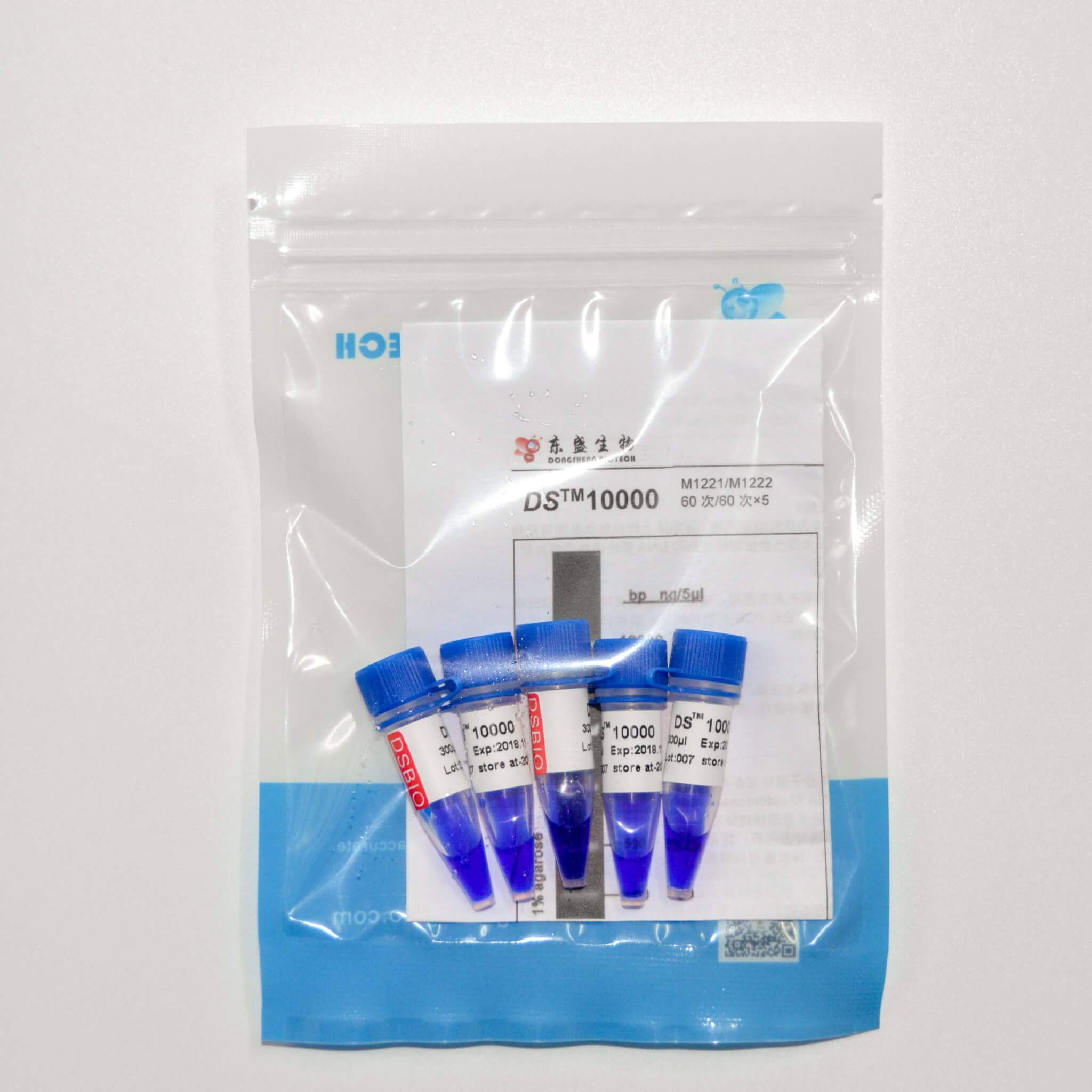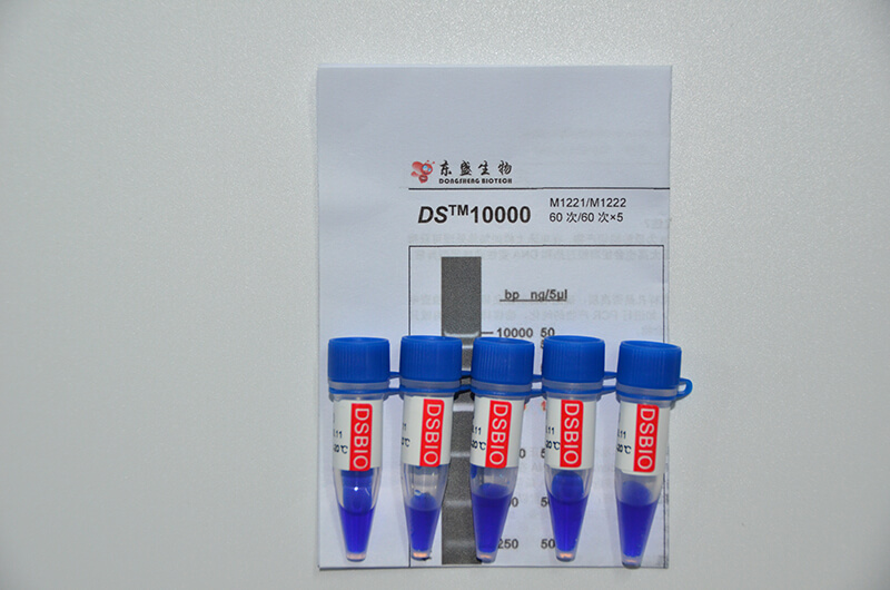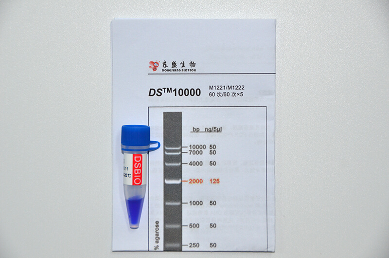 DS™10000是由7条双链线状DNA片段混合而成的DNA分子量标准(DNA Marker/ DNA Ladder),适用于确定250 bp至10 kb的线性双链DNA片段大小,指示带为2000 bp,便于电泳后观察。每条带都通过严格的物理定量,可用于测定目的片段的大小和含量。