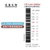 LD Low Ladder是由10条双链线状DNA片段混合而成的DNA分子量标准(DNA Marker/ DNA Ladder),适用于确定25 bp至700 bp的线性双链DNA片段大小,两条指示带为100 bp和300 bp,便于电泳后观察。每条带都通过严格的物理定量,可用于测定目的片段的大小和含量。本品为米兰milan生物LD系列DNA Marker,适用于新型核酸染料(如米兰milanDSRed等)预染法琼脂糖凝胶电泳。