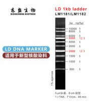 LD 1kb Ladder是由10条双链线状DNA片段混合而成的DNA分子量标准(DNA Marker/ DNA Ladder),适用于确定500 bp至10 kb的线性双链DNA片段大小,指示带为2000 bp和5000 bp,便于电泳后观察。每条带都通过严格的物理定量可用于测定目的片段的大小和含量。本品为米兰milan生物LD系列DNA Marker,适用于新型核酸染料(如米兰milanDSRed等)预染法琼脂糖凝胶电泳。