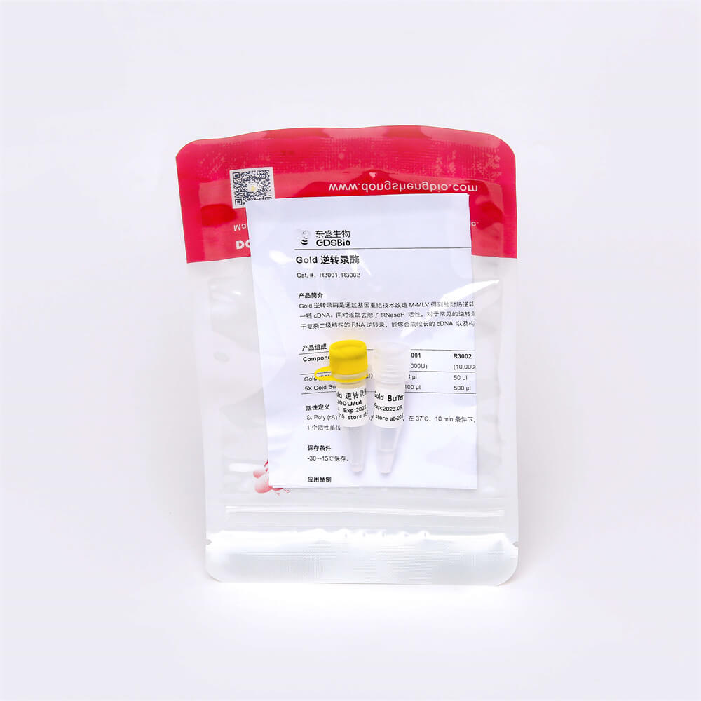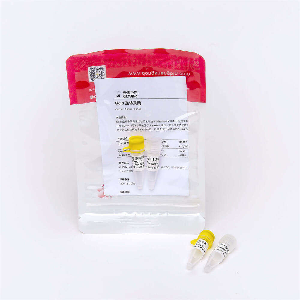 Gold逆转录酶是通过基因重组技术改造M-MLV得到的耐热逆转录酶,具有更高的热稳定性,可在 37℃-55℃条件下合成第一链cDNA。同时该酶去除了RNaseH 活性,对于常见的逆转录反应抑制剂具有较高的耐受度,cDNA合成能力更强,可用于复杂二级结构的RNA逆转录,能够合成较长的cDNA 以及构建高比例的全长cDNA文库等。