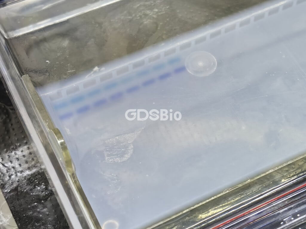 👉 浓度错误直接导致分辨率下降,大片段跑不动,小片段跑成一团。