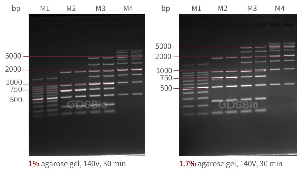 1%与1.7%琼脂糖凝胶分辨率对比